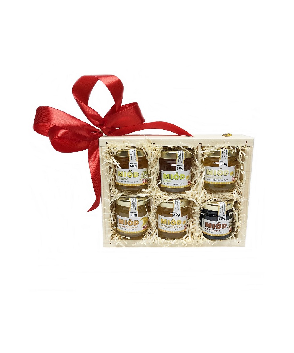 Zestaw składa się z 6 słoiczków (po 50g) różnych, naturalnych miodów.