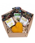 Całość spakowana w ozdobne i wytrzymałe pudełko prezentowe. Zawinięte w przezroczystą folię i zawiązane ozdobną wstążką.